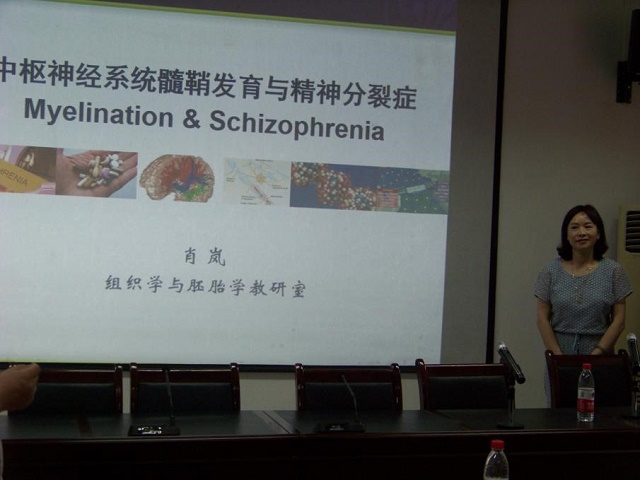 2017年6月23日上午,由研究生院主办,mobile288-365承办的研究生跨学科学术沙龙“中枢神经系统髓鞘发育与精神分裂症”在mobile288-365218会议室举行。这次学术沙龙报告由第三军医大学组胚教研室主任、博士生导师肖岚教授主讲,mobile288-365吴建云副教授主持。参加这次学术沙龙的有mobile288-365的赵永聚副院长,王鲜忠、李跃民、金美兰教授,蒋曹德副教授,胡海霞、邱小燕、杨海丽博士及来自不同学科或专业的研究生、本科生共约30余人。